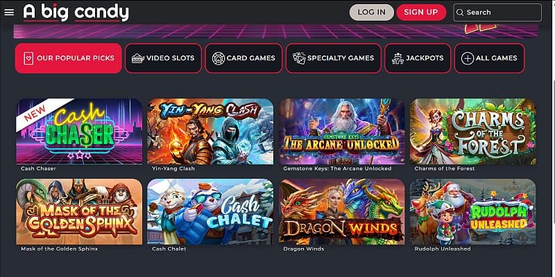 - A Big Candy: If you love spinning reels, A Big Candy’s online pokies collection will keep you busy. Use codes ATLANTIS320, TEMPLE320, or JUNGLE320 to claim a massive 320% bonus plus 55 free spins on your first deposit.