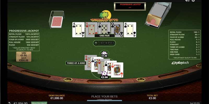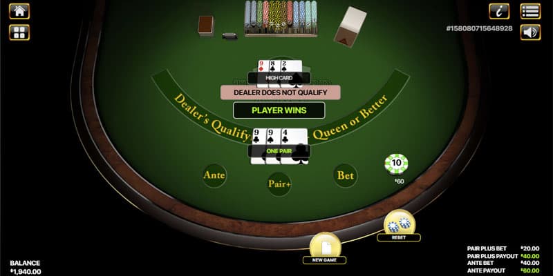 Five cards to you, five to the dealer, who must qualify with Ace-King or better. It’s a straight head-to-dealer race with a progressive jackpot option for the big sweep. Fewer decisions, bigger single-hand swings.