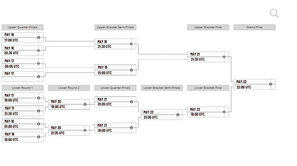 - Todas as partidas, exceto as Grandes Finais, são BO3 (melhores de 3)