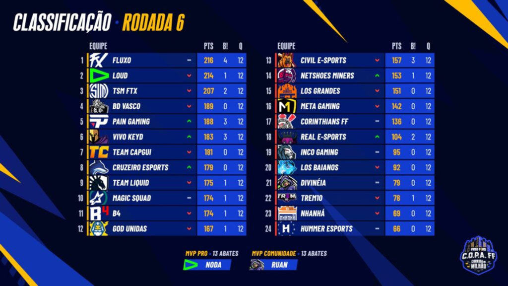 Depois de uma semana repleta do mais alto nível competitivo, os finalistas da C.O.P.A. FF estão finalmente definidos. Fluxo, LOUD e TSM FTX chegam na Corrida do Milhão como grandes favoritas, mas precisarão provar sua força perante outras nove imponentes candidatas ao prêmio.