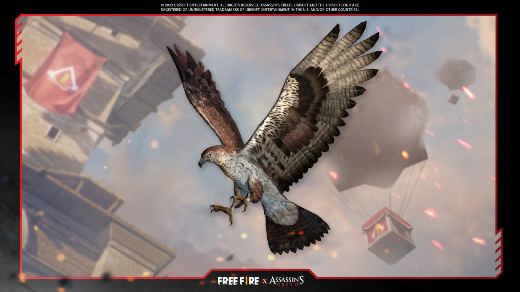 Além das skins de personagens e equipamentos, o pet Falcão também ganha uma skin com o evento crossover de Assassin’s Creed. Será possível torná-lo semelhante ao Ikaros, companheiro de membros da irmandade na saga.