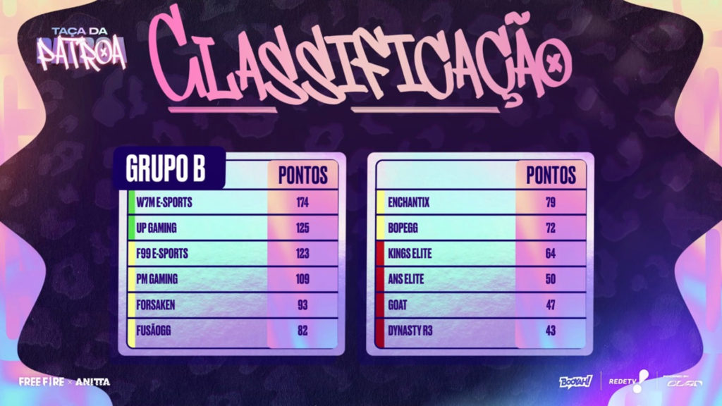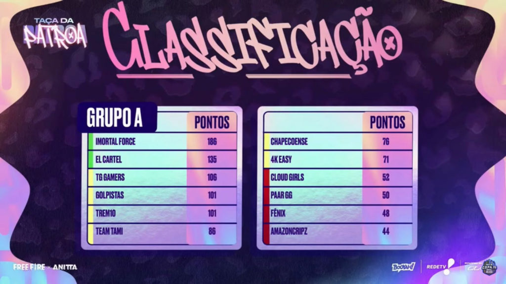 Na final, as equipes disputarão o título usando a personagem de Anitta, “A Patroa”, que chegará ao Free Fire em breve.