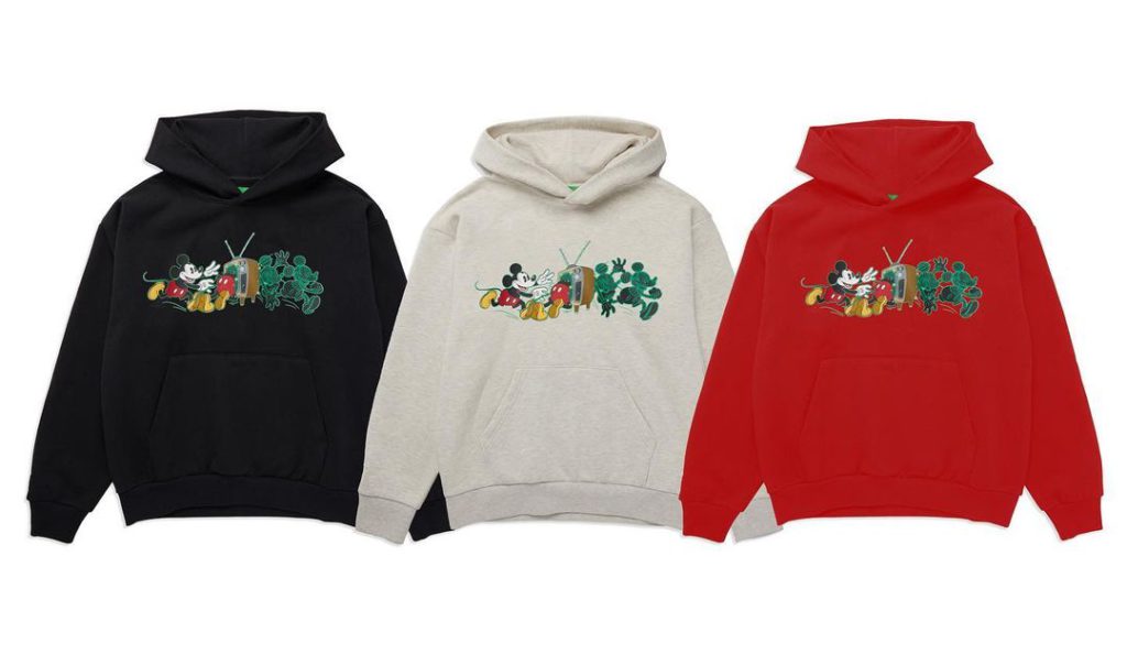 As peças incluem camisetas, moletons e bonés, em diferentes cores e com desenhos retrô do personagem Mickey Mouse bordados, que brilham no escuro. Veja algumas fotos da coleção: