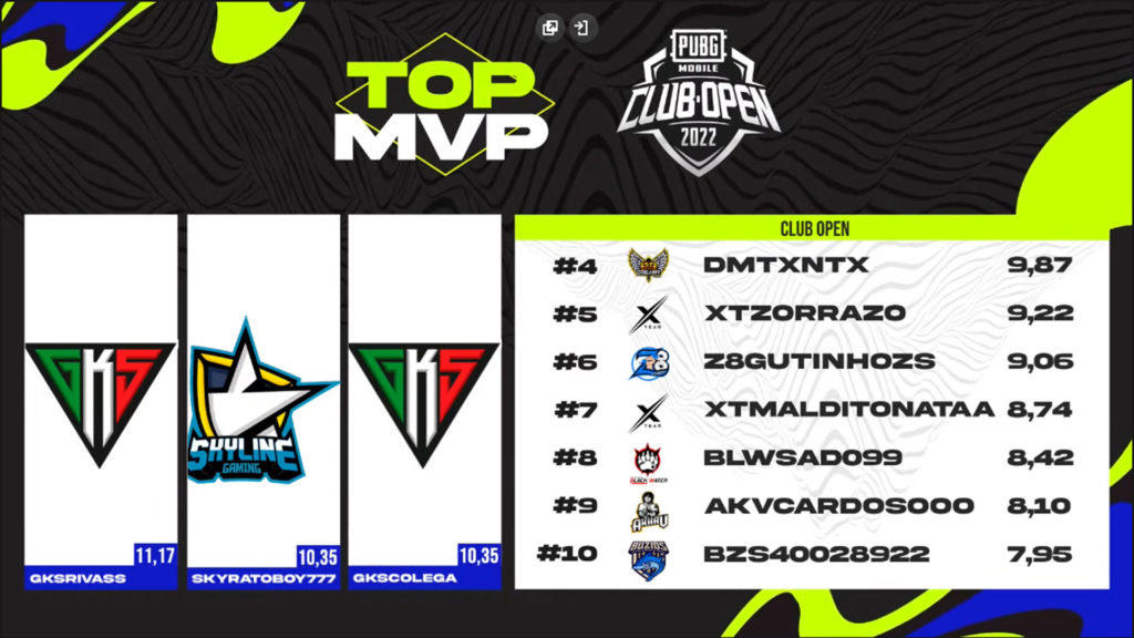 A GKS Esports é a grande campeã da PUBG Mobile Club Open 2022 (PMCO) nessa nova temporada, com times de toda a América Latina. Composto por Juan “gksAkilesz” Padron, Brayan “gksRivass” Estrada, Ruiz “gksTonka” Armando, Sergio “gksColega” Lizalde, Giovanni “gksRaptor” Hernández e Sebastian “gksKrilin” Vargas, o time mexicano leva o prêmio de US$ 10 mil e a vaga para a PUBG Mobile National Championship (PMNC).