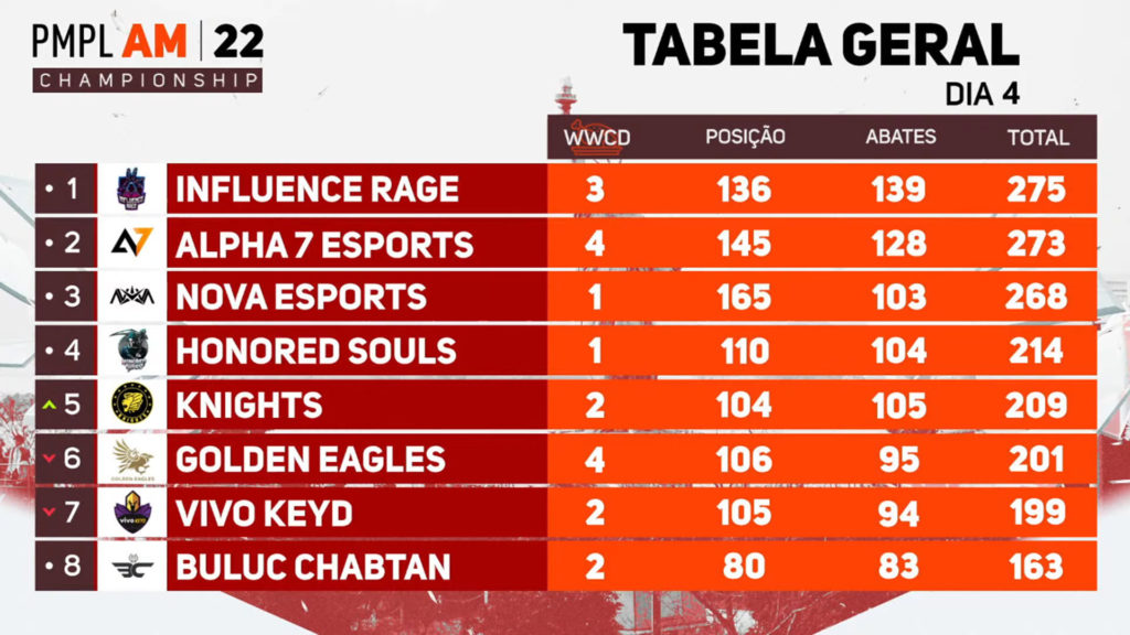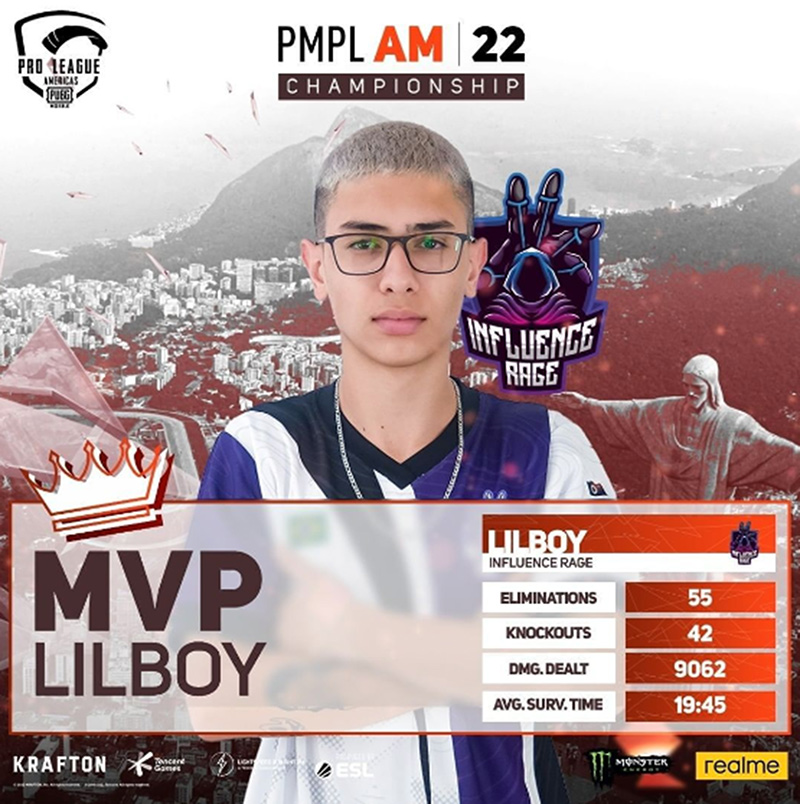 A Influence Rage é a equipe brasileira vencedora da PUBG Mobile Pro League Americas Spring 2022 (PMPL Americas) com o total de 275 pontos e três vitórias. Composto por Pauli, FederaL, Lilboy, Law e CaioWSK1, a Influence Rage leva o título de melhor das Américas e o prêmio de US$ 23 mil.