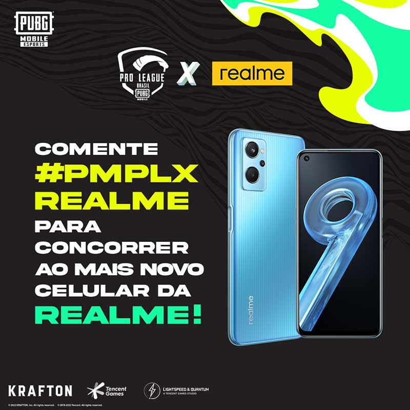 Como novo parceiro do PMPL Brasil 2022 a realme traz o realme 9i para a maior competição de PUBG Mobile do país.