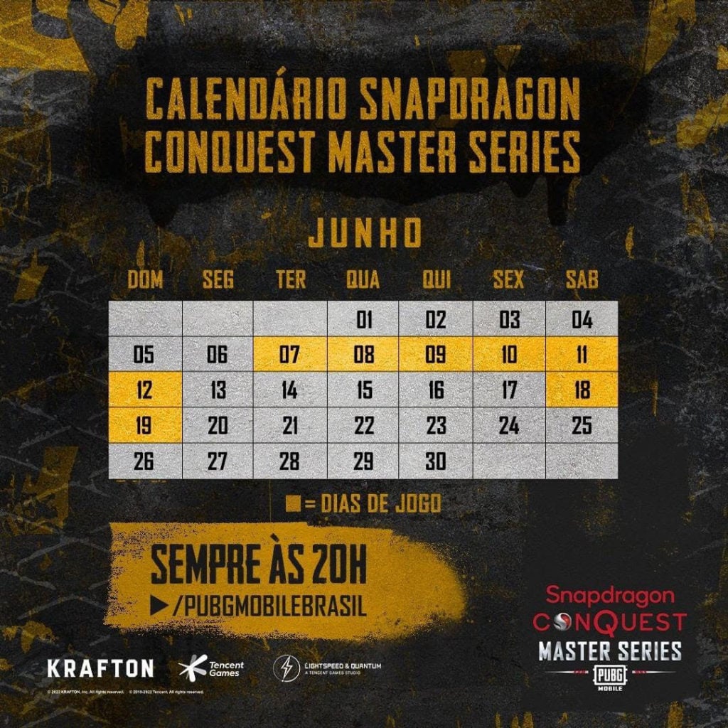 Ao longo de oito rodadas, 199 times disputaram o Snapdragon Conquest Open Series de PUBG Mobile – torneio de e-Sports apoiado pela Qualcomm Serviços de Telecomunicações Ltda. (Qualcomm Brasil) – que foi marcado por fortes emoções no campo de batalha. Apenas oito garantiram as vagas para o Snapdragon Conquest Master Series, que acontecerá a partir de hoje (7), com premiação de US$ 10 mil e valendo um smartphone realme 7 Pro. A transmissão será no YouTube.