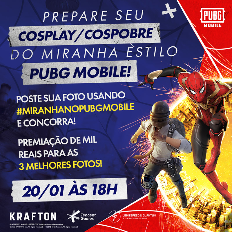 O PUBG Mobile, em parceria com os YouTubers T3ddy, Jean Luca, Júlio Cocielo, o pro-player VItu2K e um convidado especial surpresa, realizam o Showmatch do Miranha, evidenciando a colaboração do battle royale com o filme “Homem-Aranha: Sem Volta para Casa” da Sony Pictures. Além do gameplay, serão sorteados gift cards da Google Play aos espectadores e o um concurso de Cosplay/Cospobre valendo R$ 1 mil para os três melhores.