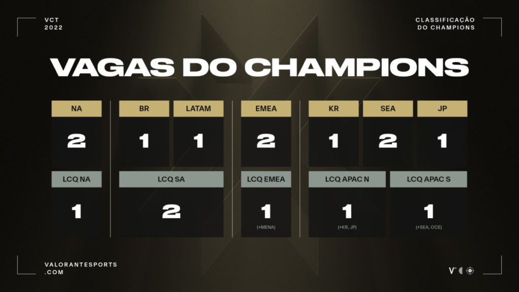 Já para o Champions, as regiões BR e LATAM terão uma vaga garantida cada, além de duas vagas que serão disputadas no Last Chance SA. Dessa forma, o número de vagas para a região continua o mesmo, mas sem duas vagas garantidas exclusivamente para equipes brasileiras, como foi em 2021.