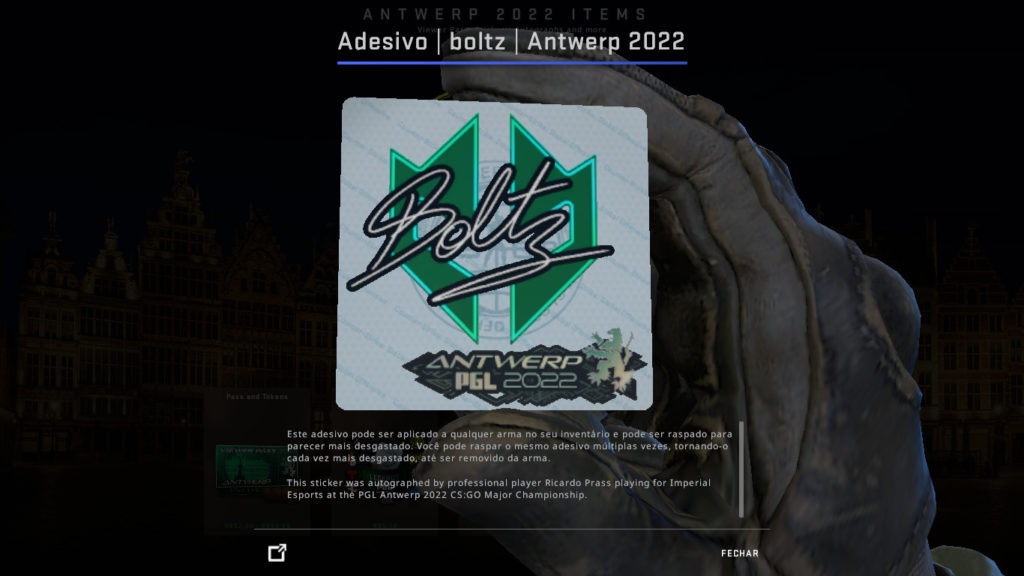 O PGL Major Antwerp 2022, o campeonato mais importante do calendário competitivo de CS:GO, está para começar. Em preparação para o torneio, a Valve liberou dentro do jogo os adesivos de todos os jogadores que estarão presentes no campeonato. Aqui você confere as assinaturas de todos os players da Imperial, FURIA e MIBR.