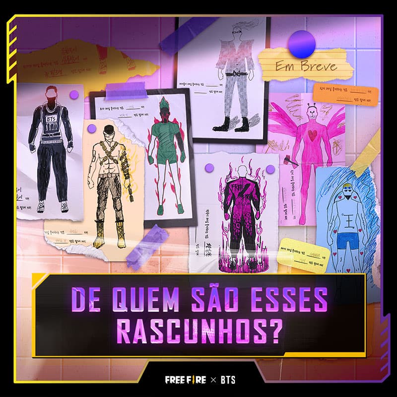 Os jogadores podem esperar para ver os colecionáveis temáticos do Free Fire x BTS desenhados à mão pelos próprios membros do BTS.