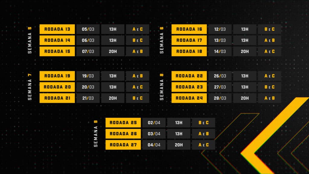 A competição este ano terá ainda novos casters e comentaristas comandando as 28 rodadas. Camilota, MurilloShooow, Samuca, Carlos, Croft, Pires, Carol Bombshell e Joker guiarão o público por todas as disputas até a grande final, que está marcada para o dia 16 de abril.