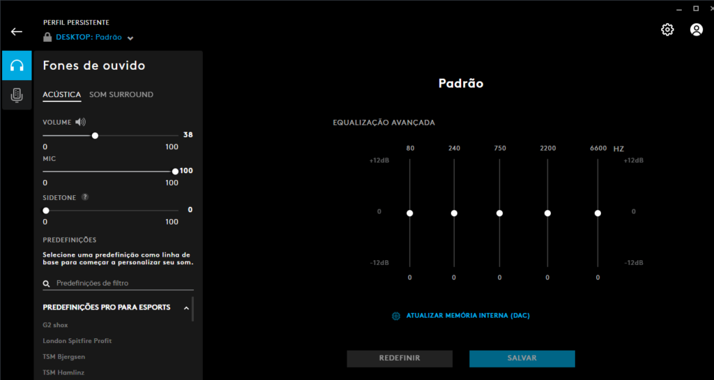 Assim como acontece com diversos periféricos da marca, o headset Logitech PRO X tem integração com o software Logitech G Hub. Lá os usuários podem equalizar o som do fone e áudio do microfone da maneira que desejam. Para o microfone, eles disponibilizam uma ferramenta bem interessante, que é a possibilidade de utilizar o setup de equalização de jogadores profissionais, como, por exemplo, o do jogador de League of Legends da Liquid, Søren “Bjergsen” Bjerg. O microfone também conta com a tecnologia Blue Voice que permite suprimir ruídos e melhorar a qualidade de áudio pelo software G Hub.