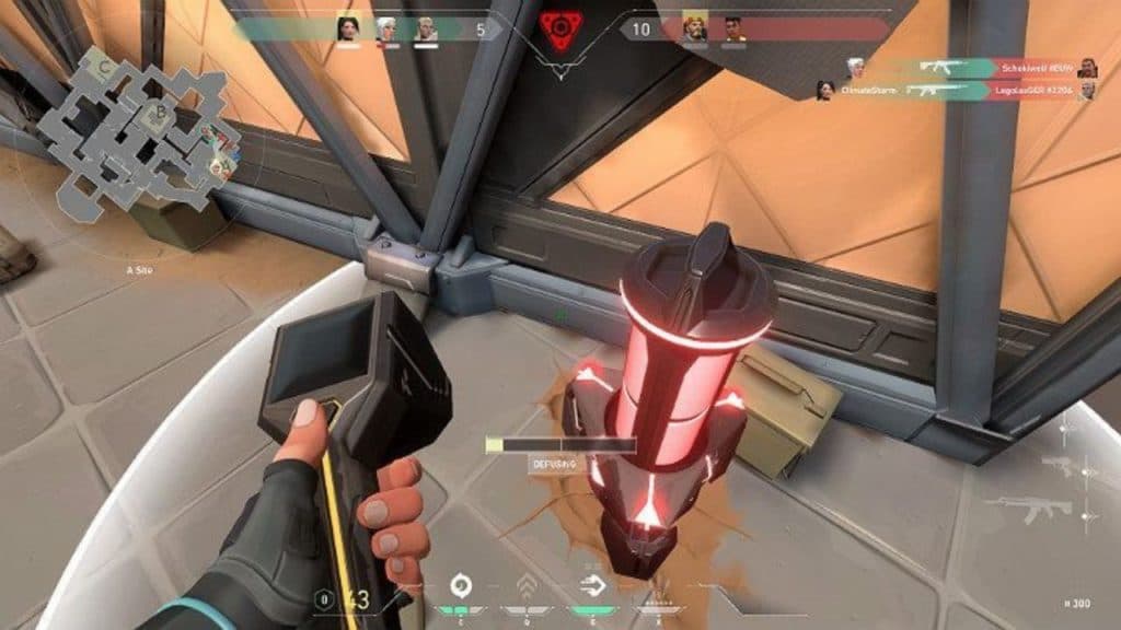 Assim que esse tempo encerra, as cortinas de bloqueio, que divide os mapas, caem e começa a rodada em si. Elas tem 100 segundos de duração, ou seja, o ataque tem 1 minuto e 40 segundos para plantar a Spike. Se ela for plantada, ela irá ficar ativa, até explodir, por 45 segundos. Para desarmar, são necessários 7 segundos, que são divididos em suas etapas. Resumindo:
