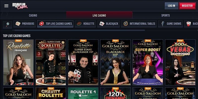 Blackjack is the backbone of Mafia Casino’s live offering. Players can choose from Gold Saloon Blackjack, Gold Saloon Blackjack 2, 3, and 4, along with Super Stake Blackjack VIP, Blackjack Max, Gravity Blackjack, Blackjack Oro, and several VIP-only tables.