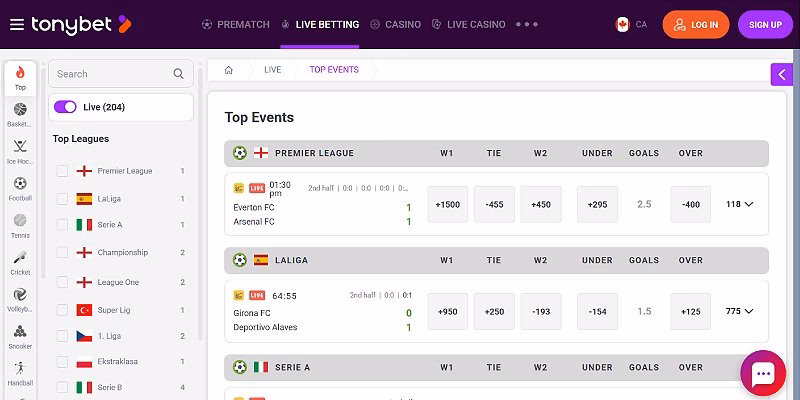 Tonybet is one of the top sportsbooks Ontario has to offer when it comes to betting options. It features thousands of betting lines every single day, and they cover all kinds of sports.