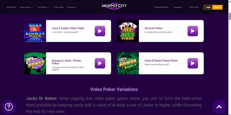 5. Jackpot City – Best Canadian Poker Site for RNG Poker Titles