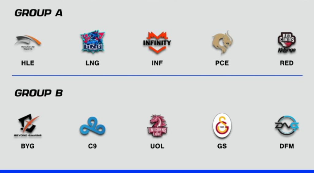 Play-ins Gruppe A: Hanwha Life Esports, LNG Esports, Infinity Esports, PEACE, RED Canids.