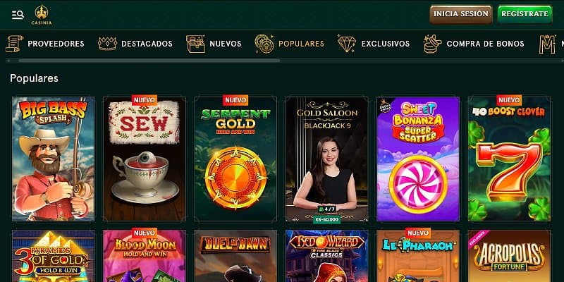 En Casinia hay miles de títulos entre la biblioteca estándar y el casino en vivo. Encontrarás de todo: tragaperras, juegos en vivo, juegos de mesa y mucho más, con suficientes opciones para no aburrirte.