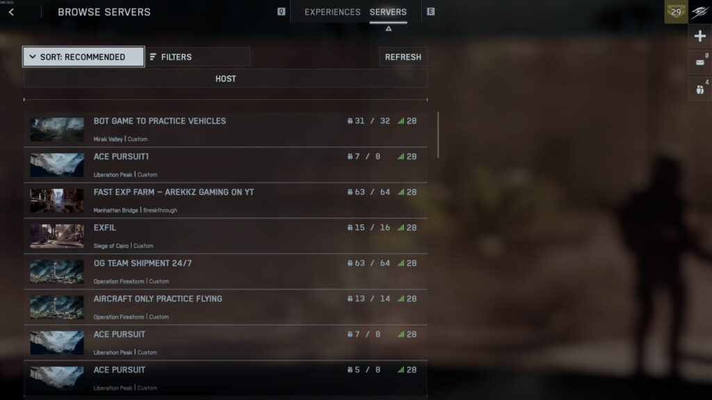 - Now, you can pick any server that matches the map and mode you want. Ideally, you want to pick a server with a large player count that’s not too populated (i.e., look for “6/48” player count, for example)
