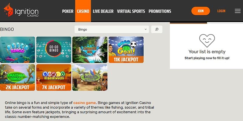 Ignition: You can supercharge your bingo experience at Ignition with a superb rewards program, in which you’ll earn points and tickets with each casino game you play.