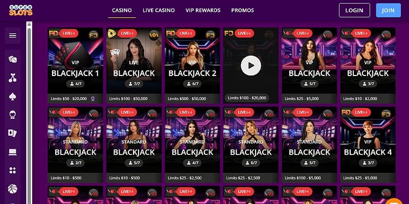 For the RNG games, Super Slots has a further 29 blackjack variants. Double Up Blackjack lets you double your hand or stand, while Dragon Multiplier has a 50x multiplier. Rolling Stack Blackjack, meanwhile, has a side bet and is perfect for those who love strategy casino games.