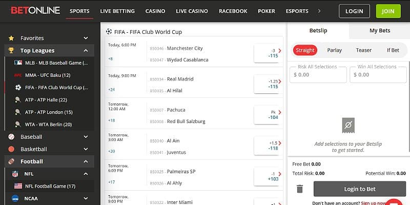 It may not have the most exotic FIFA betting markets, but if you’re after solid match winner, goal total, or outright tournament odds, BetOnline is hard to beat.