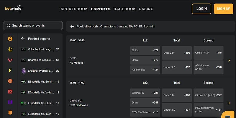 The main reason BetWhale makes our top five is its market coverage, particularly when it comes to FIFA esports betting.