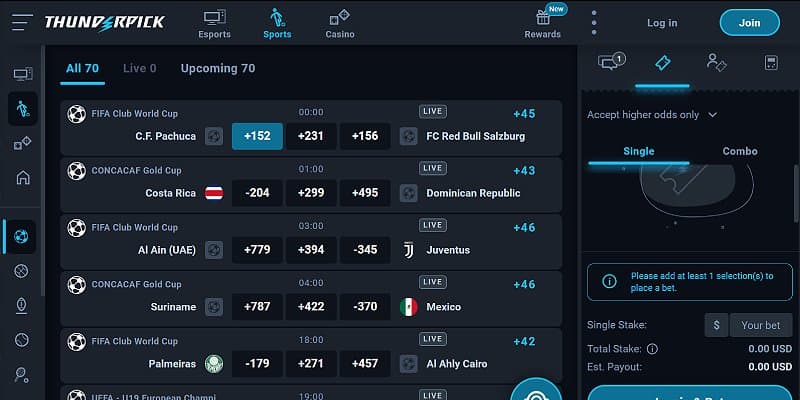 Live FIFA matches come with dynamic in-play odds, letting you jump in during key moments. While niche props like ‘first goal scorer’ are limited, the site excels at providing early lines and incredibly competitive odds.