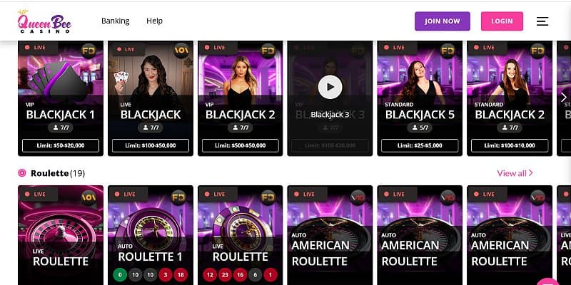 4. Queen Bee Casino – Top NC Online Casino for Live Dealer Games