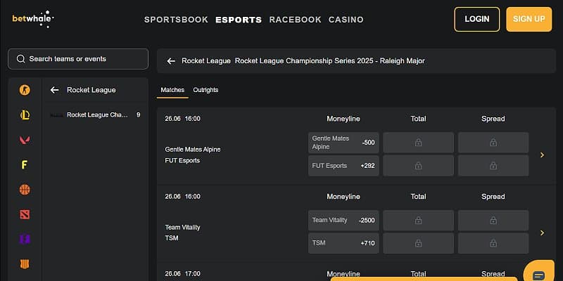 4. BetWhale – Best online Rocket League betting site for parlays