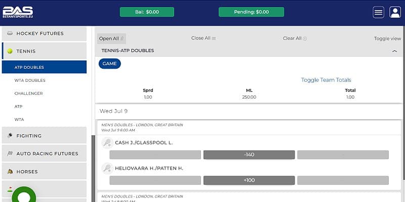 BetAnything has got you covered when it comes to ATP and WTA betting. You can bet on ATP 250, 500 and 1000 events, as well as all four Grand Slams. Some Challenger events are covered, too, including Carey, Newport and Arizona.