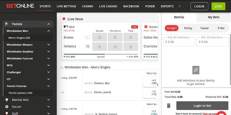 1. BetOnline – Best Tennis betting site overall