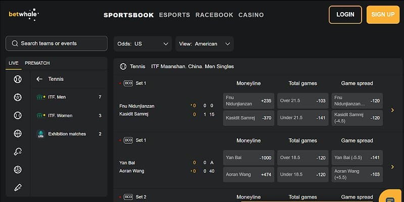 Even when there is no ATP or WTA action, you can still bet on Challenger and ITF matches at BetWhale, which goes deep with their tennis coverage. If you feel confident enough to bet on tournaments like ITF Zagreb - go for it.