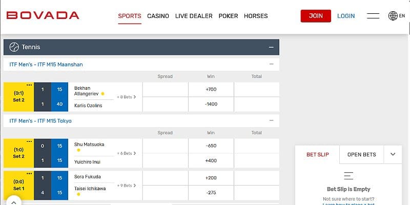 2. Bovada – Best betting site for Tennis props