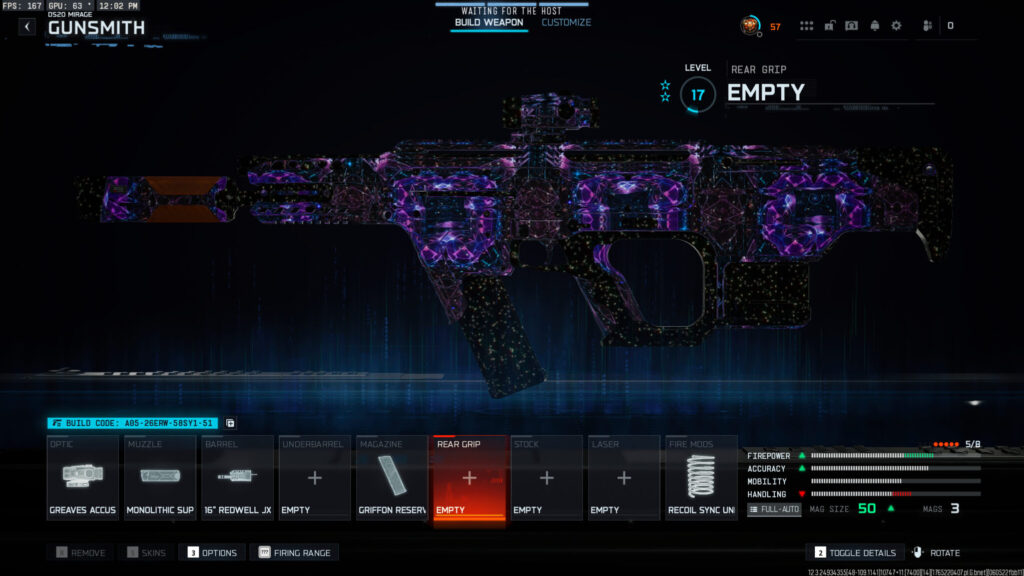 Loadout Build Code: A05-26ERW-58SY1-51