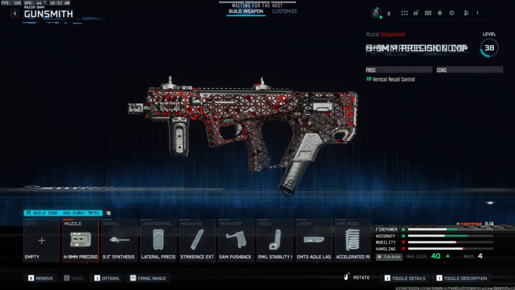 By default, the Razor 9mm has a fair amount of recoil, both vertically and horizontally. While it slightly makes up for this with decent damage range and a high fire rate, you’ll need to control that recoil with a few specific attachments. Even then, though, the Razor 9mm requires you to always be locked in with your accuracy; otherwise, the weapon sprays all over the map.