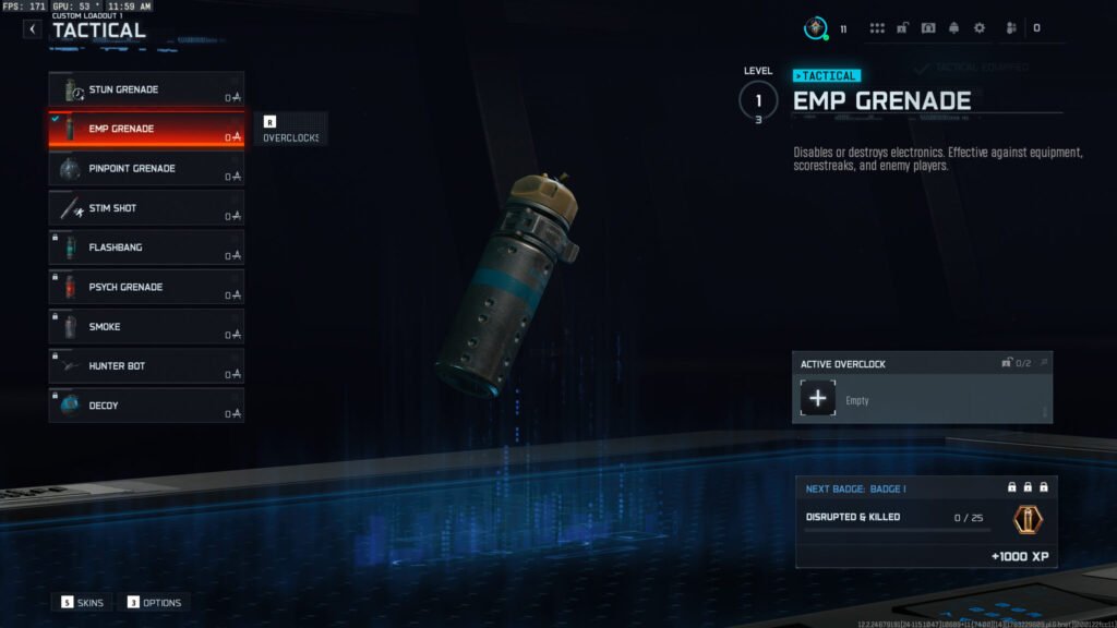 - Go to your loadouts and equip the EMP Grenade in your Tactical Equipment slot