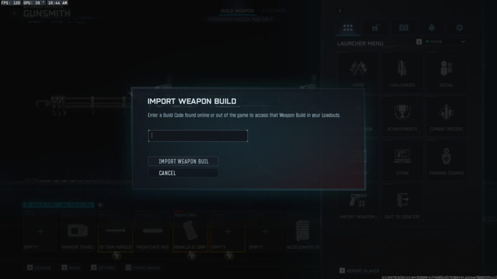 - Copy your Build Code into the text box, press “Import,” and that loadout will be copied into your gunsmith