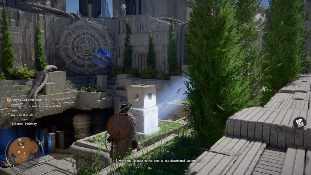 Once that happens, you’ll get a new objective that says to “Remove the wall blocking the floor.” You can now progress with moving the blue cube to its rightful location by using Axiom Force. The location is right on the blank stone cube on the right side of the Abyss Nexus area.