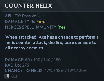 Axe’s Counter Helix has always been his signature ability. The ridiculously high PURE damage from this ability allows him to bully out weak carries early on.