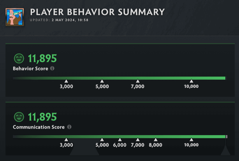A good Behavior Score and Communication Score is vital for a good Dota 2 experience.
