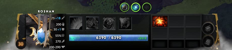 In terms of abilities, as of the current Dota 2 version, Roshan has six. Although four are passive and one doesn't really affect when you fight Roshan. So outside of his auto attacks, Roshan has one active damaging ability. So let's break them down: