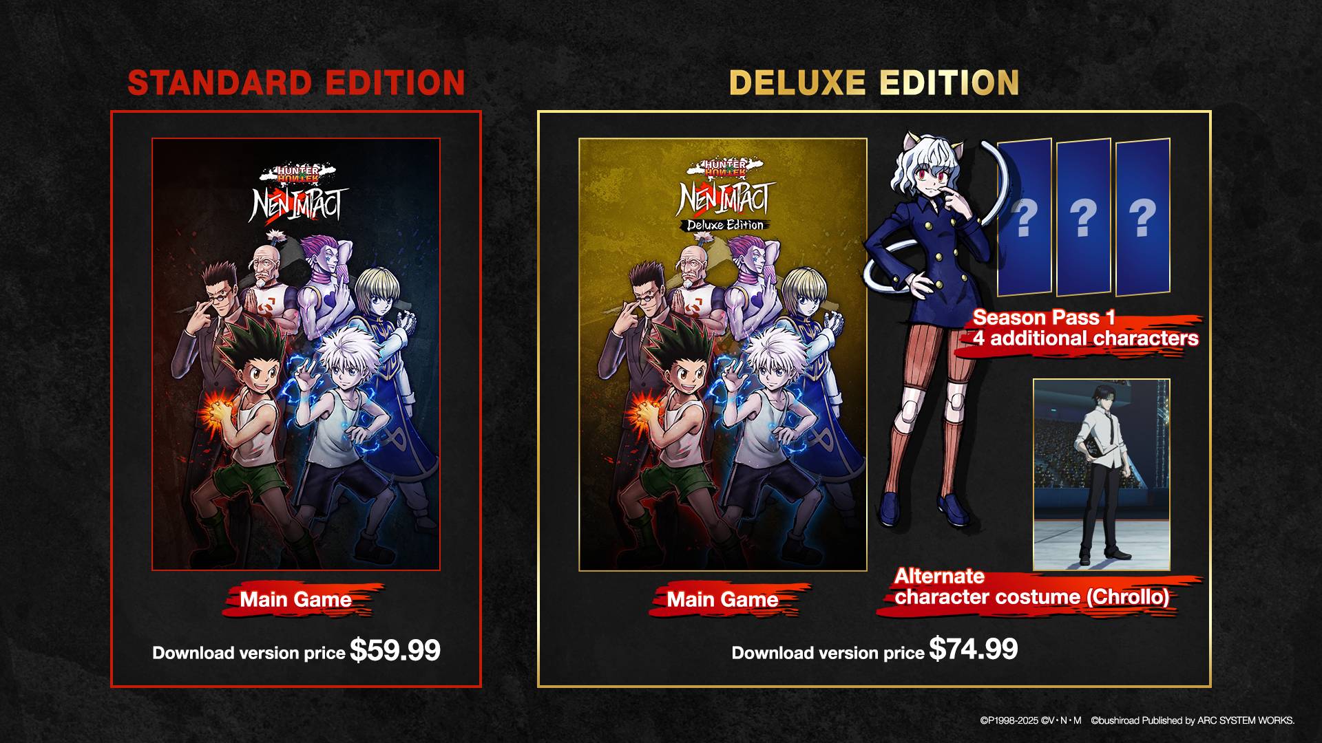 - Deluxe Edition gives players the base game and all the DLC characters of Season Pass 1. Neferpitou is the first to join the playable roster.