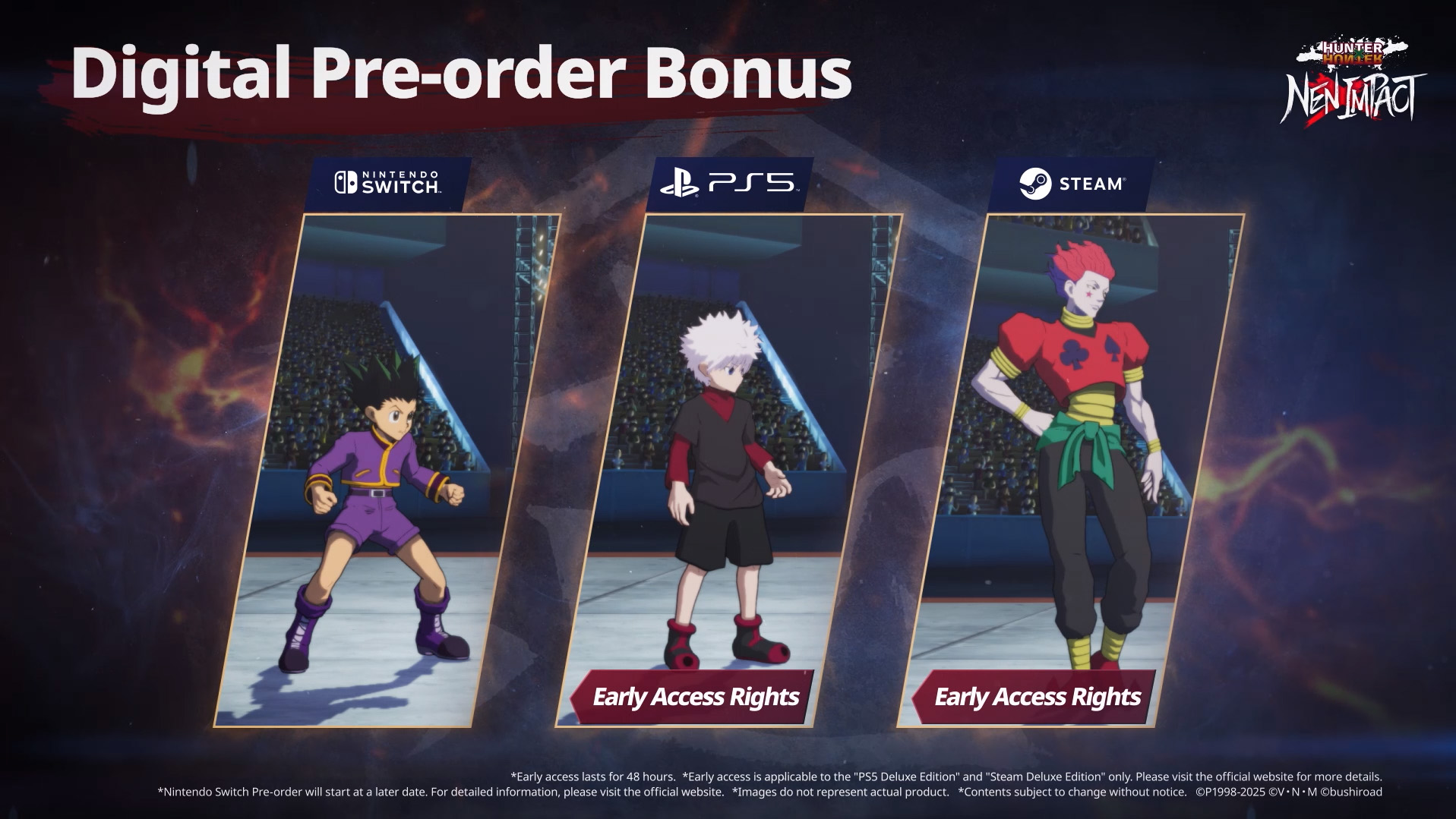 Pre-order bonus for Hunter x Hunter Nen x Impact depends on your platform
