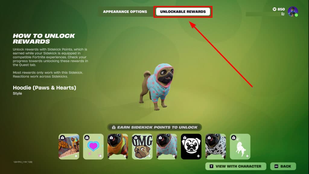 You review the many unlockable rewards for Sidekicks by following the steps below: