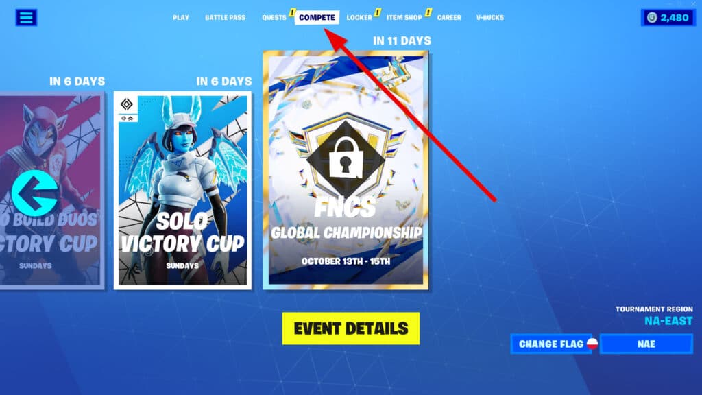 If you meet all those requirements, the FNCS Global Championship Community Cup will appear in your Fortnite “Compete” and “Discover” tab during your region’s tournament window.