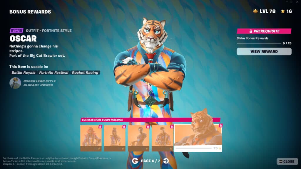To unlock three Super Styles for each character, you must reach level 100 in the Battle Pass and continue earning Battle Stars. Once you’ve completed the initial Battle Pass, you can claim additional Battle Stars in the Bonus Rewards section. You must complete the first four Bonus pages and claim all rewards.