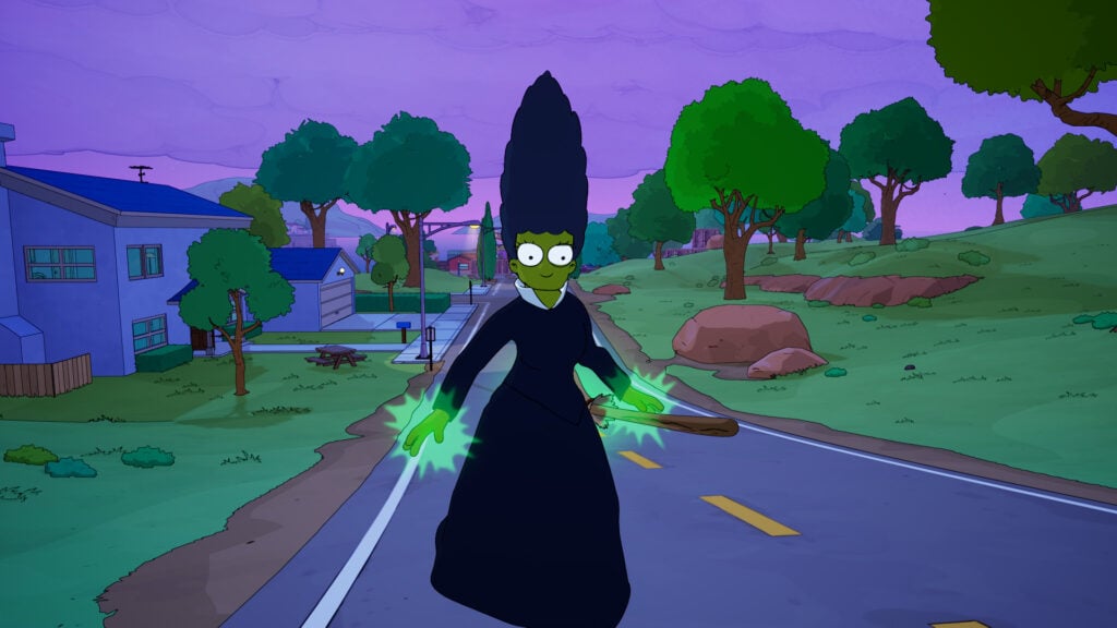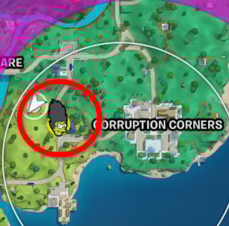 The second location of the three Simpsons boss characters in Fortnite is Witch Marge, whom we stumbled across on the outskirts of Corruption Corners. This particular instance occurred much later in the game, lending more to the randomness of these encounters.