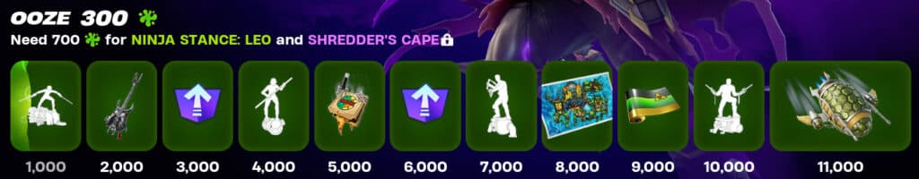 As you can see in the image above, you must gather 11,000 Ooze to complete the TMNT Battle Pass, which includes the Shredder and Super Shredder skin.